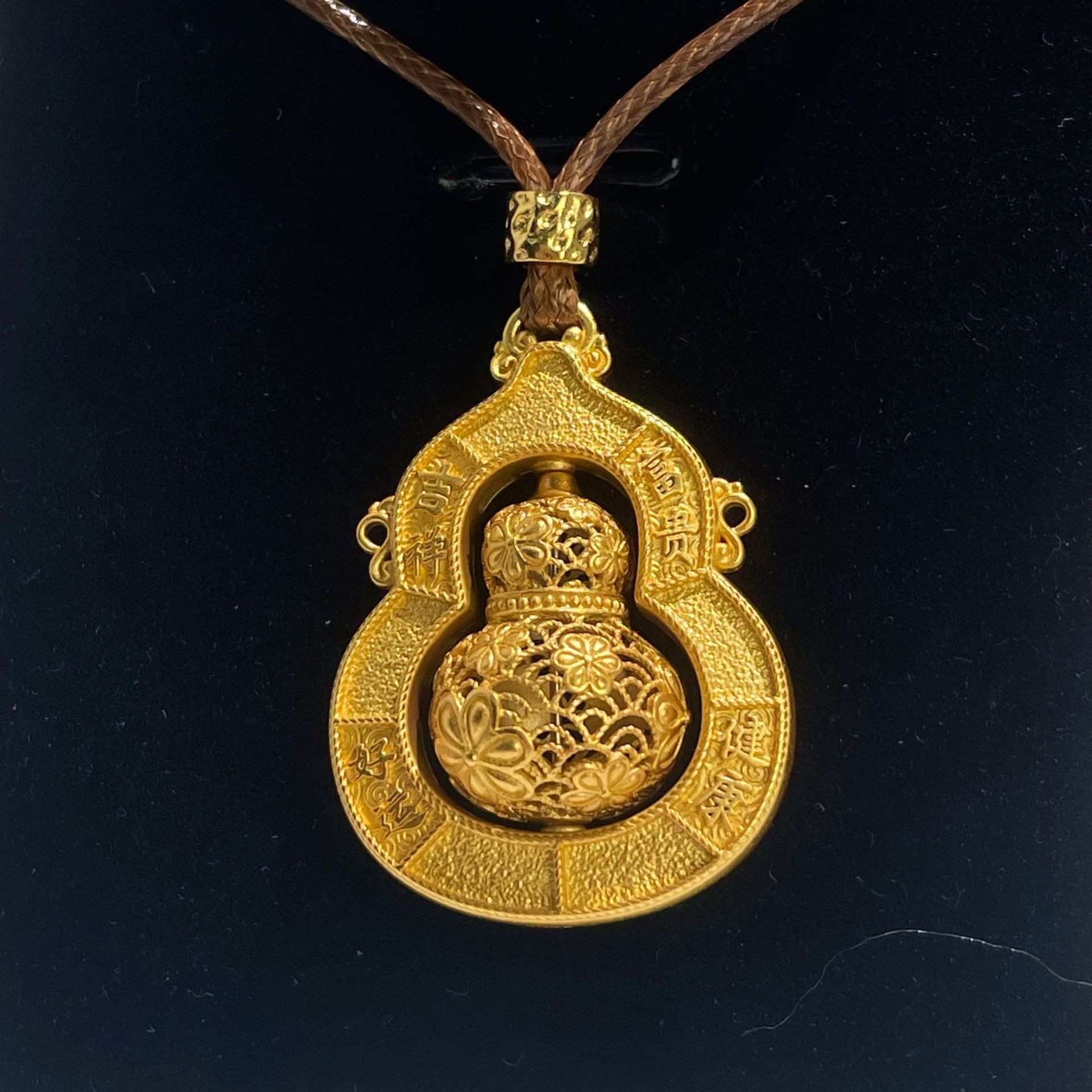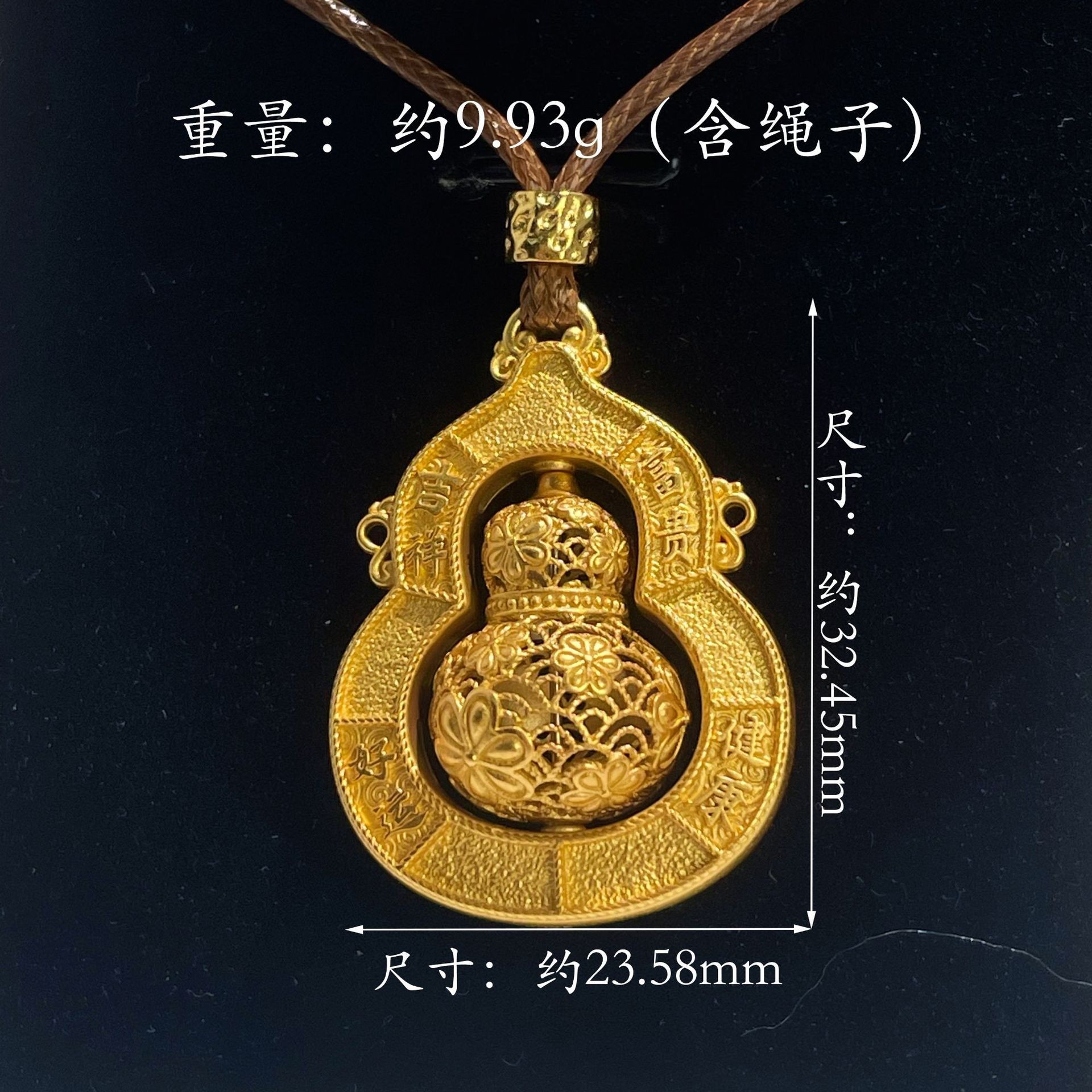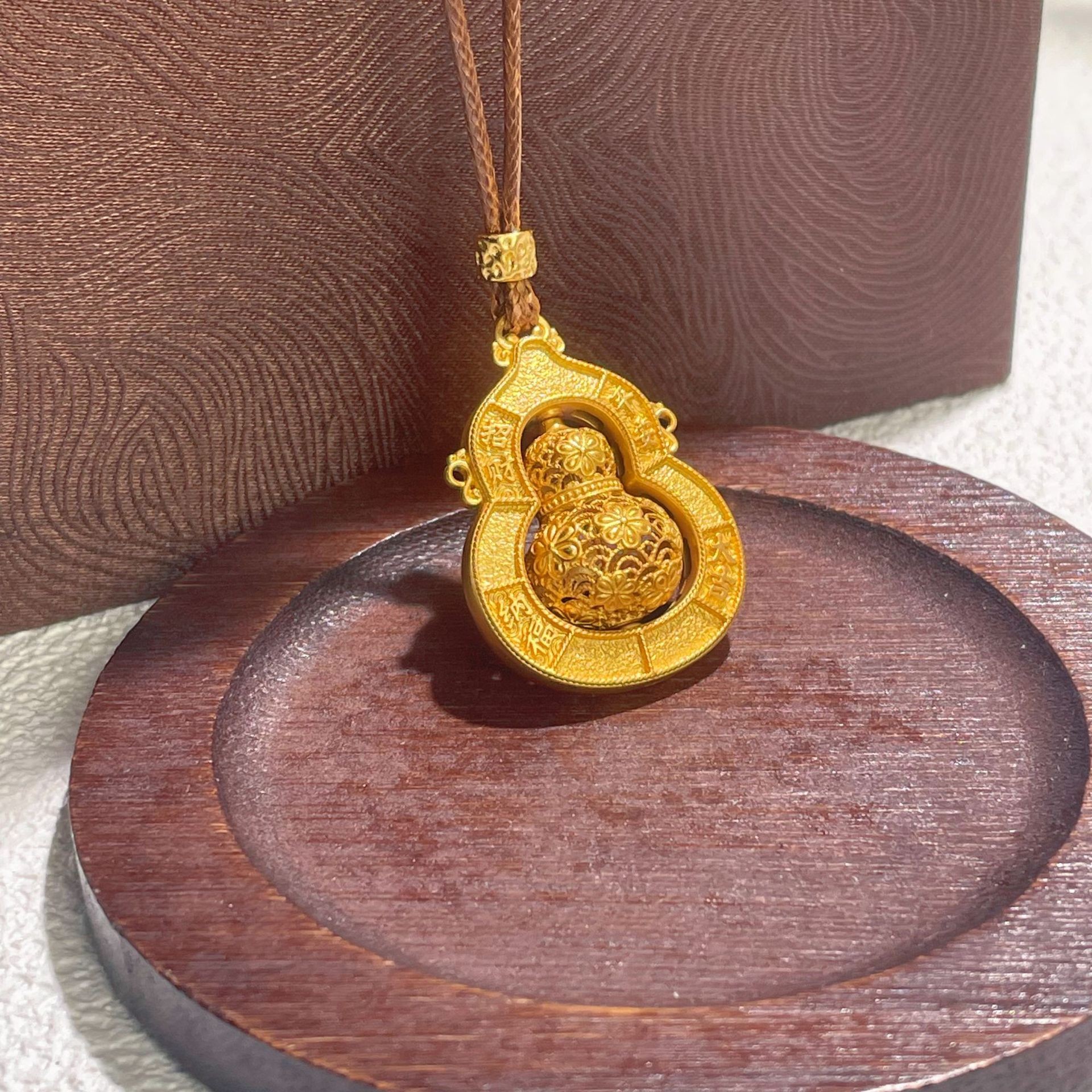 s925纯银镀黄金色首饰吉言旋转葫芦吊坠编织绳毛衣链福禄挂坠项链