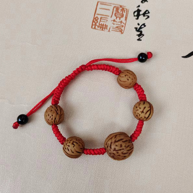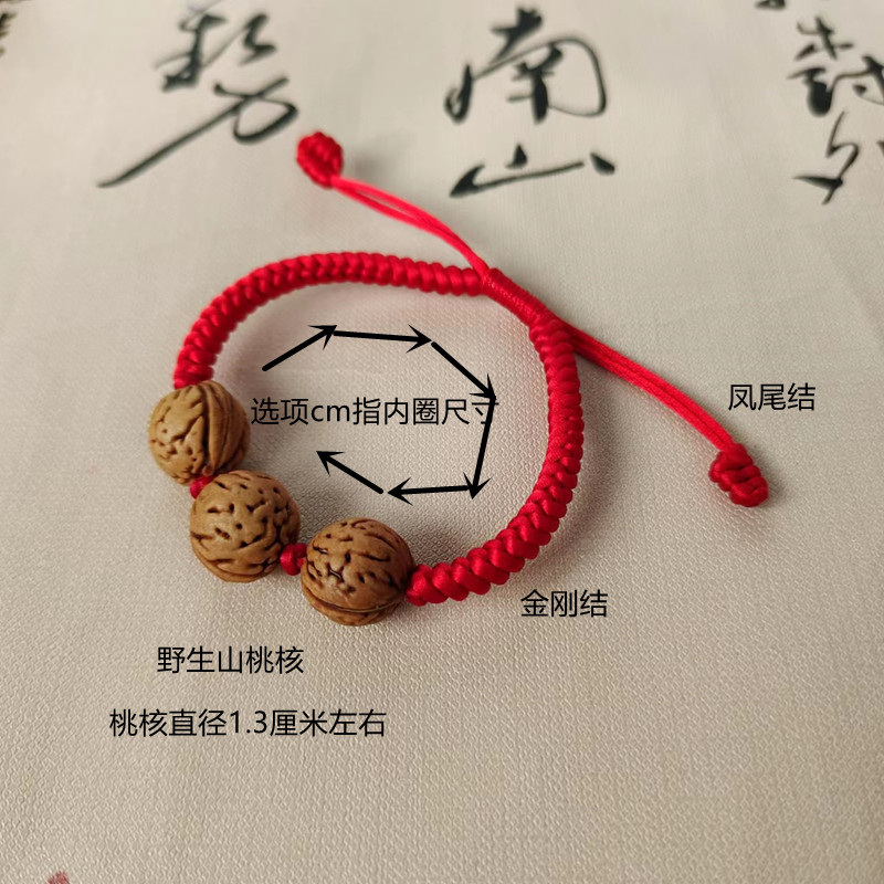 桃核手串野生山桃核婴儿童宝宝男女款本命年手工编织桃木红绳手链