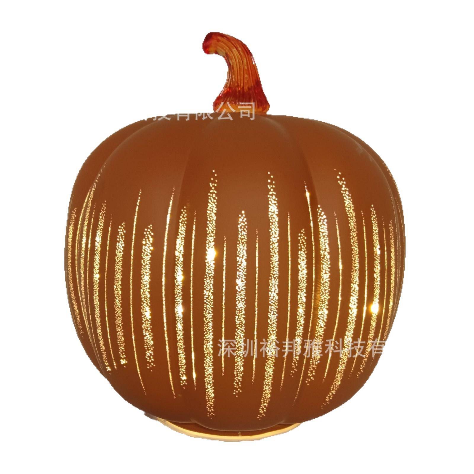 定制链接厂家跨境爆款玻璃南瓜灯带定时功能万圣节装饰发光摆件