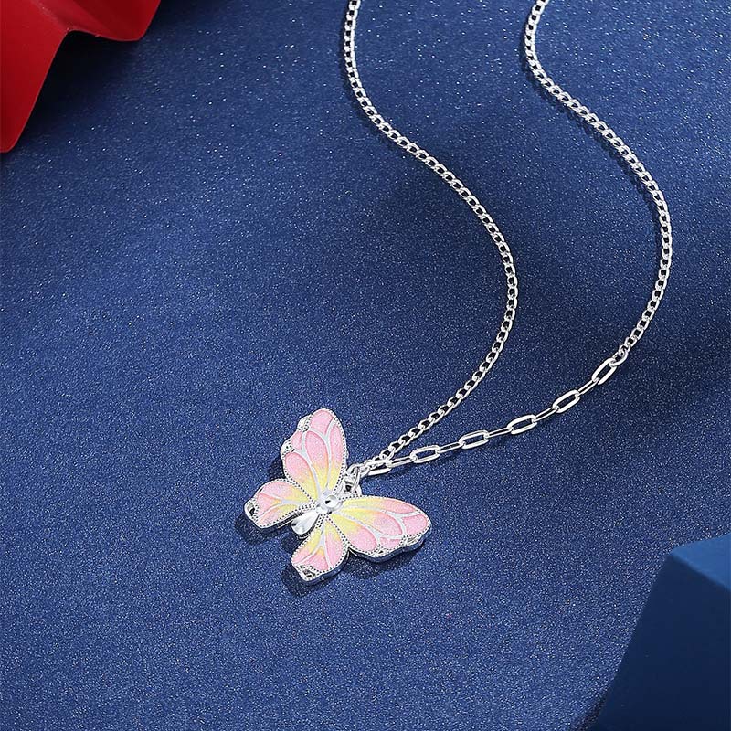 诺依足银999珐琅蝴蝶项链女爆款小众情人节礼物送女友送老婆