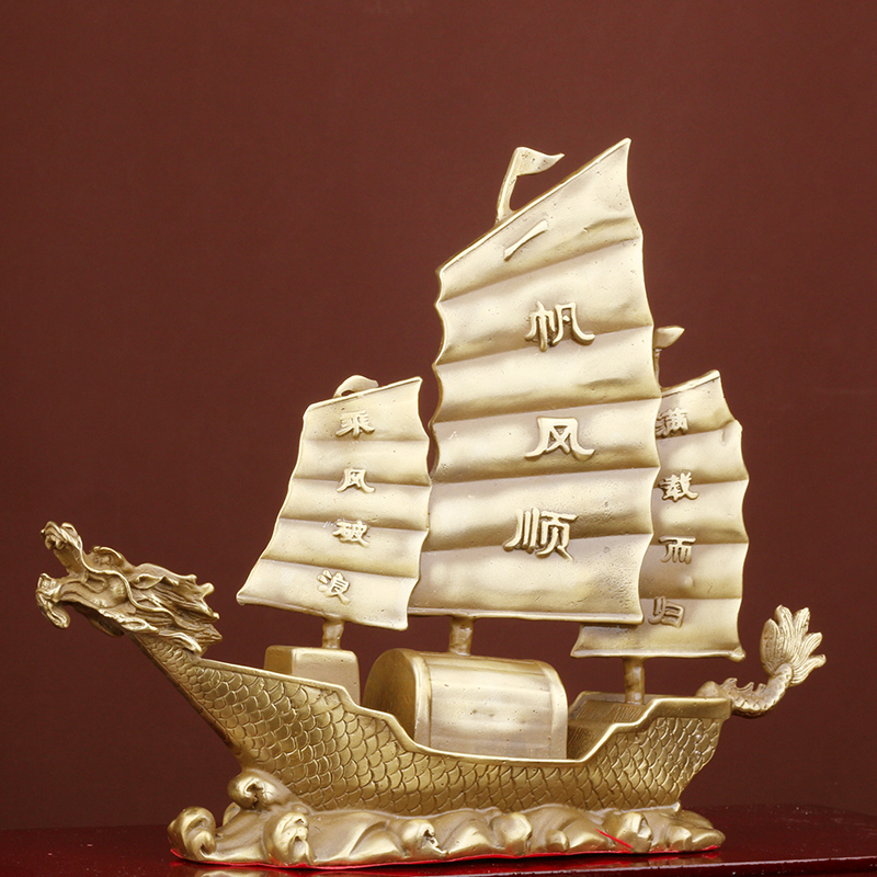 纯铜一帆风顺龙船摆件满载而归龙头船乘风破浪帆船客厅办公室装饰