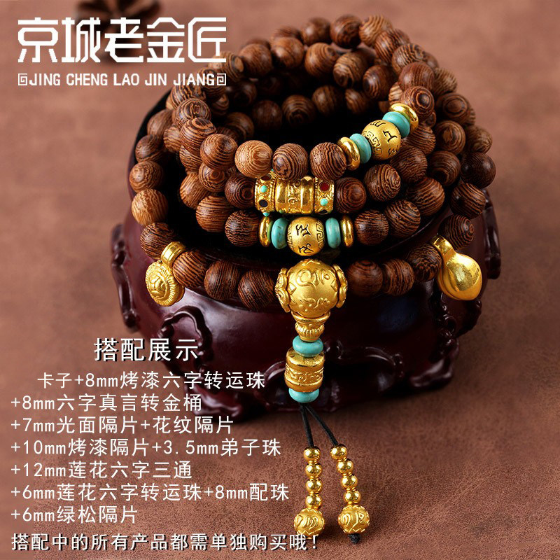 24K纯金手串配件卡子3D硬金黄金花纹光面隔珠足金999男女diy串珠