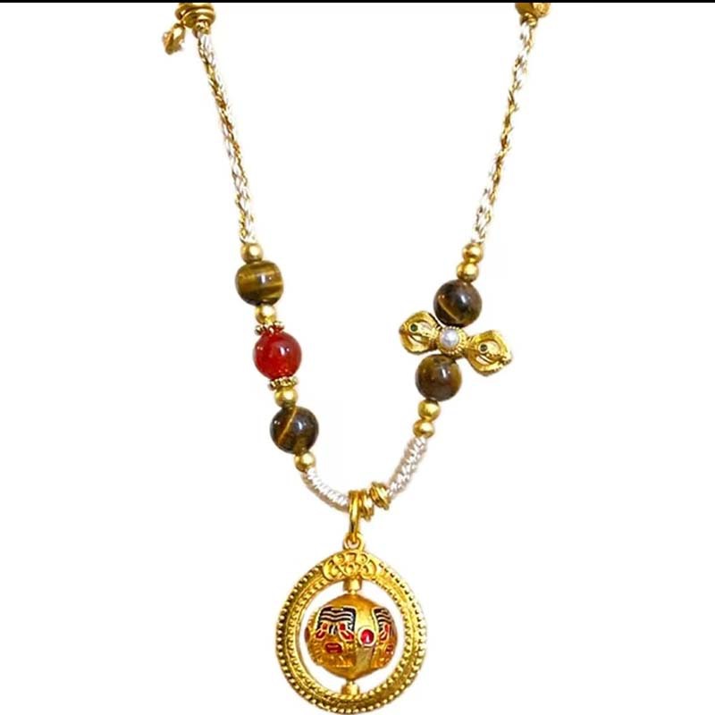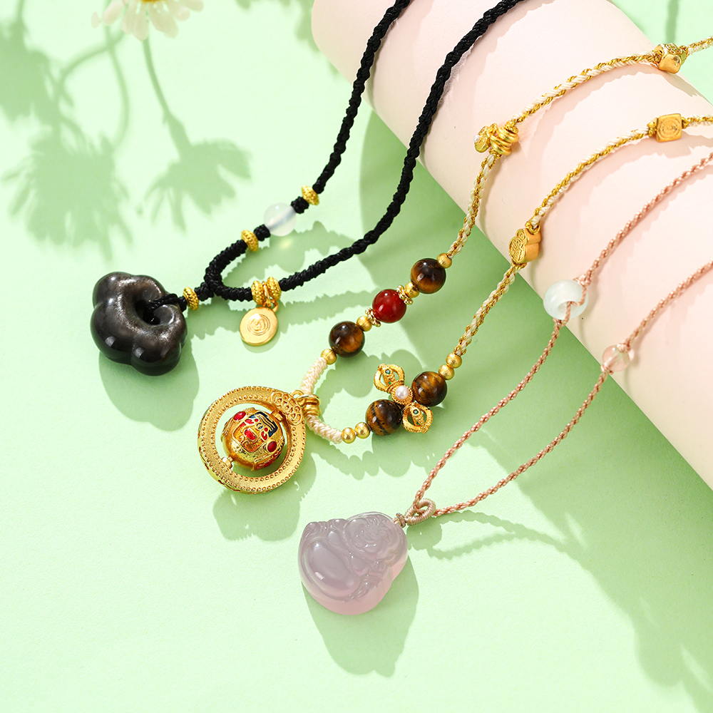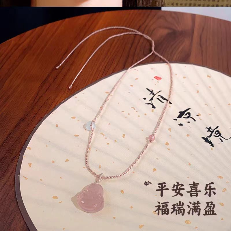 新中式金福锁虎眼石珍珠项链轻奢高级感编织绳锁骨链小众百搭时尚