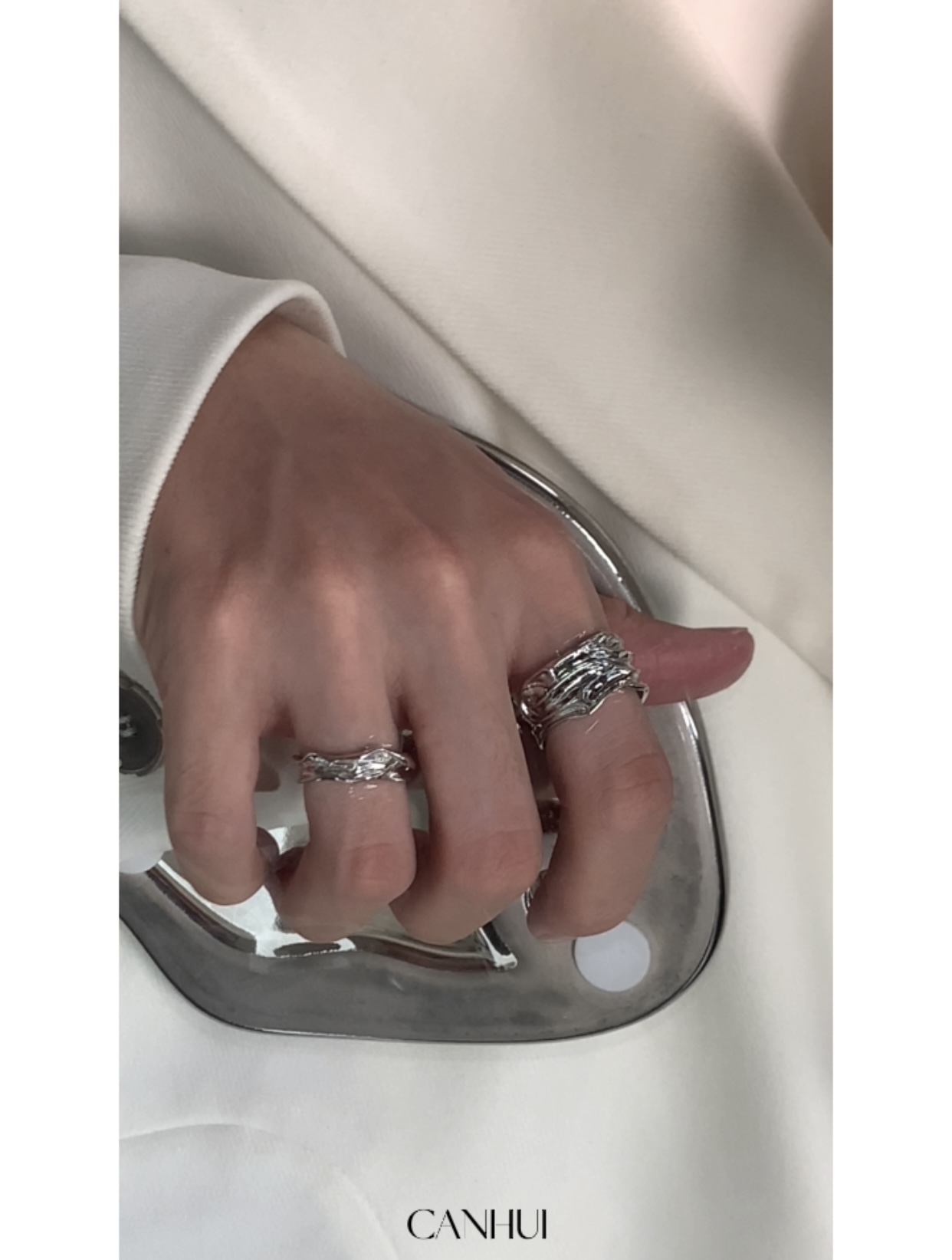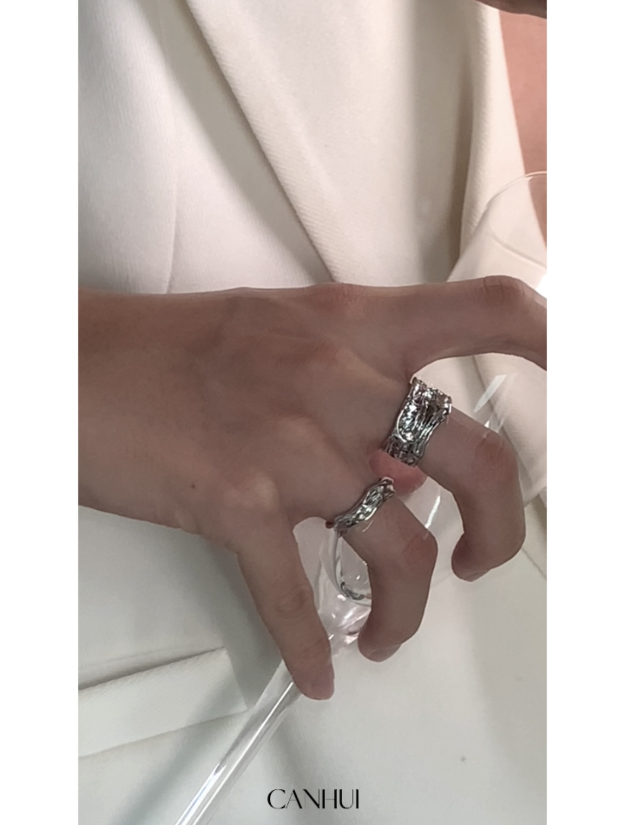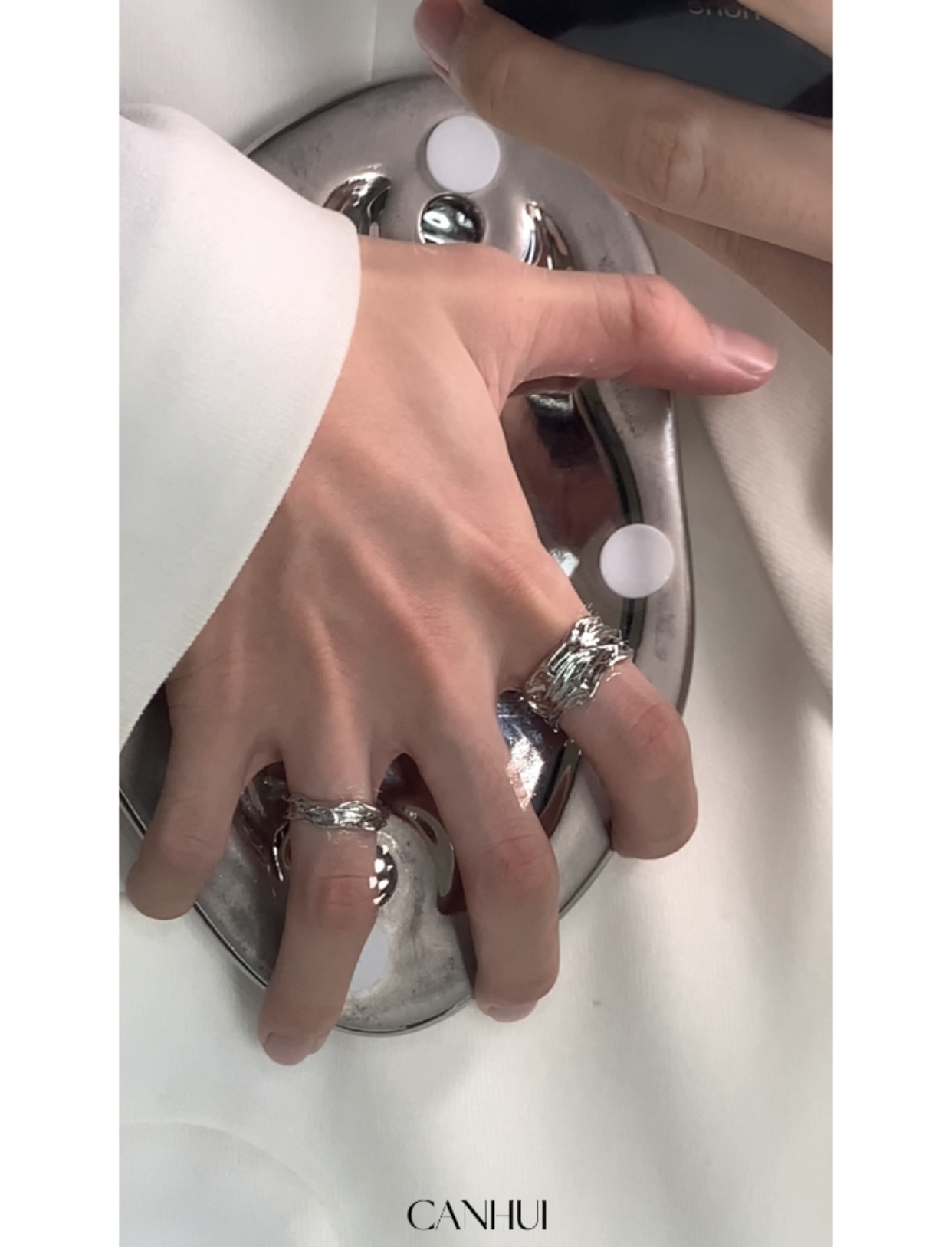 CANHUI熔岩纹理戒指男女情侣指环小众设计开口可调节冷淡风配饰