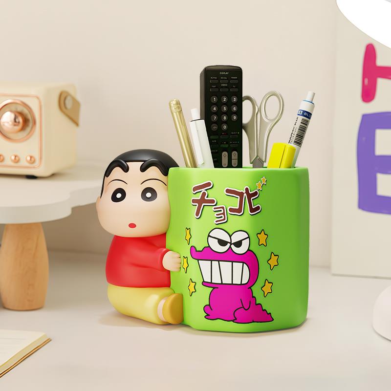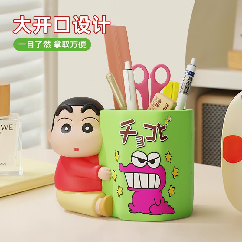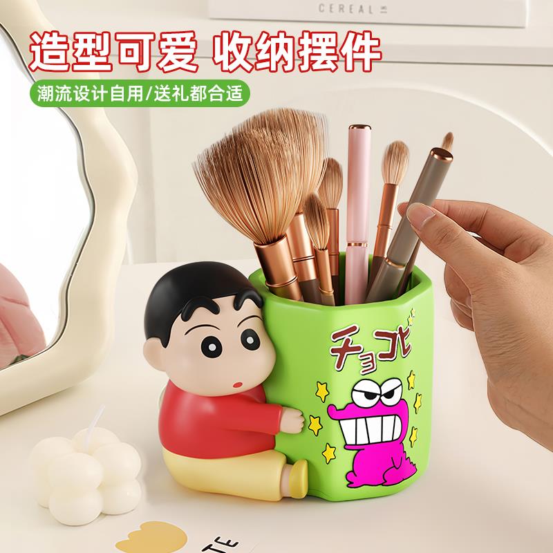 蜡笔小新可爱笔筒办公室桌面摆件遥控器化妆刷眉笔收纳盒生日礼物