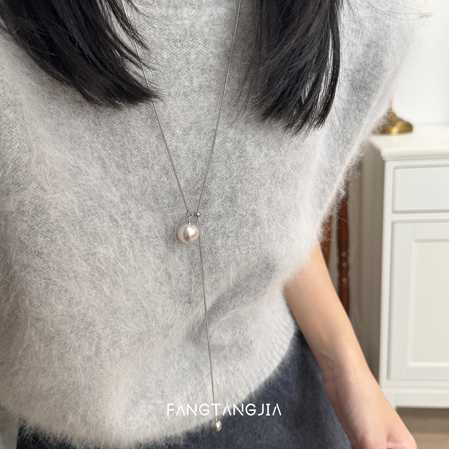 方糖家 轻奢秋冬曼塔玫瑰珍珠抽拉蛇骨长项链2025新款爆款毛衣链