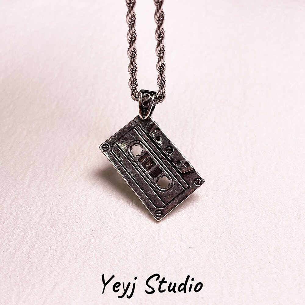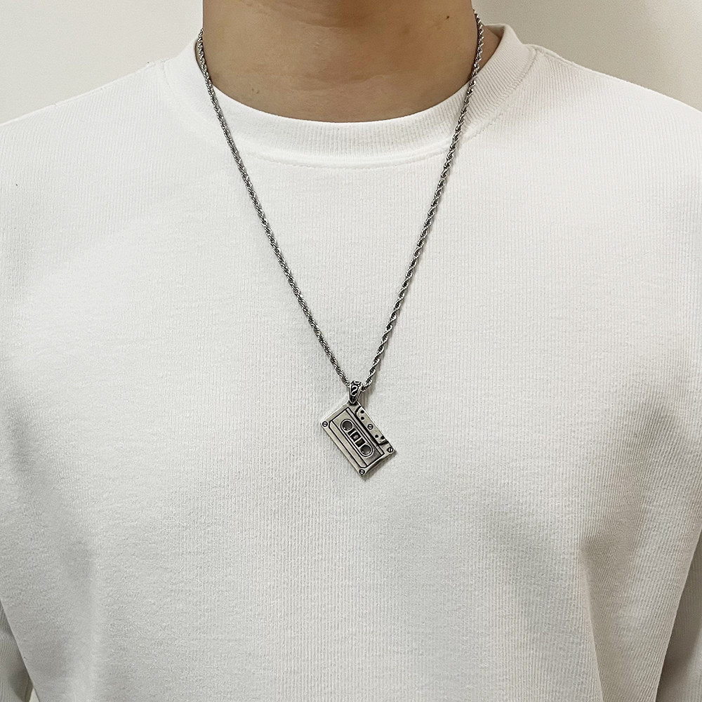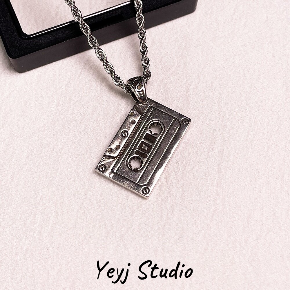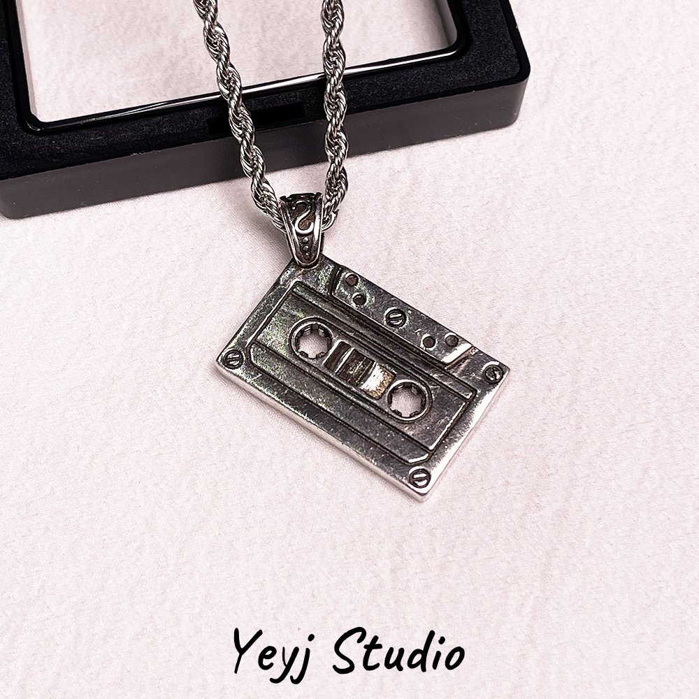 小众复古磁带吊坠项链男生高级感潮牌嘻哈卫衣链百搭毛衣链情侣链