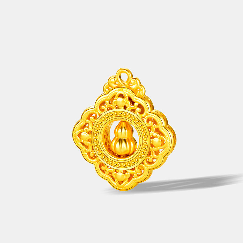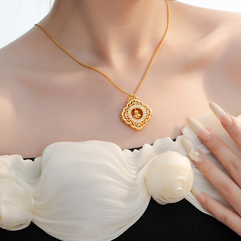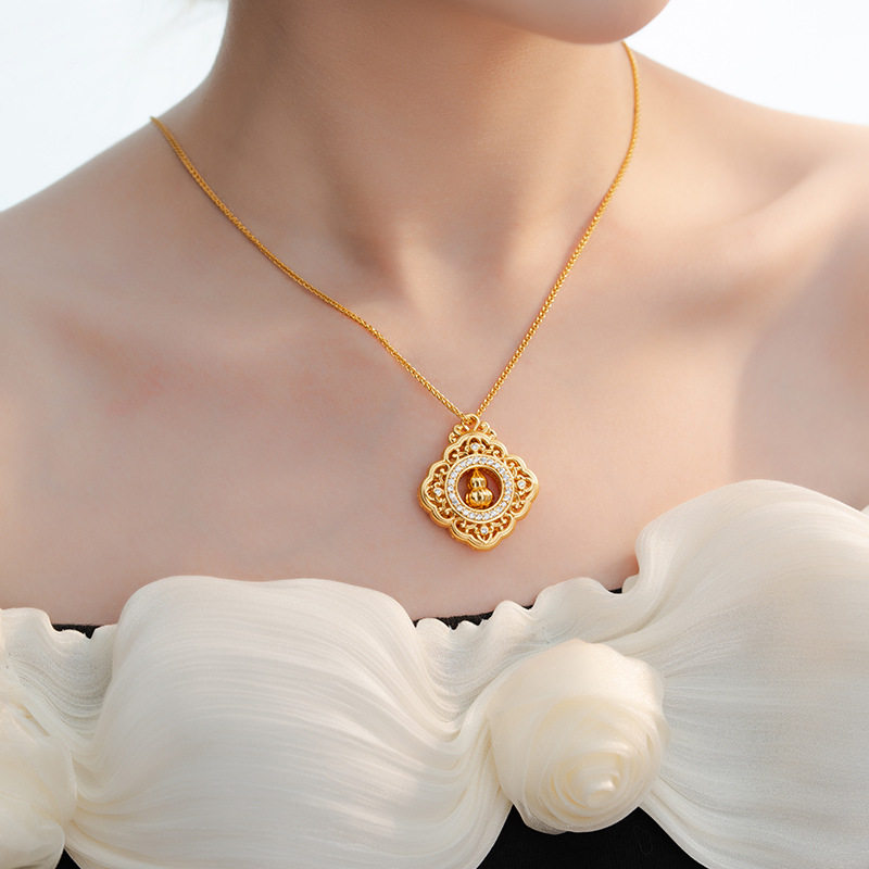 古法金色镂空葫芦吊坠女CNC纳米真空电镀新中式国风复古锆石项坠