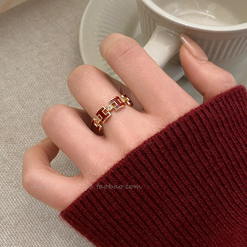 气质高级感滴釉安可拉红色锆石戒指女复古轻奢开口指环时尚食指戒