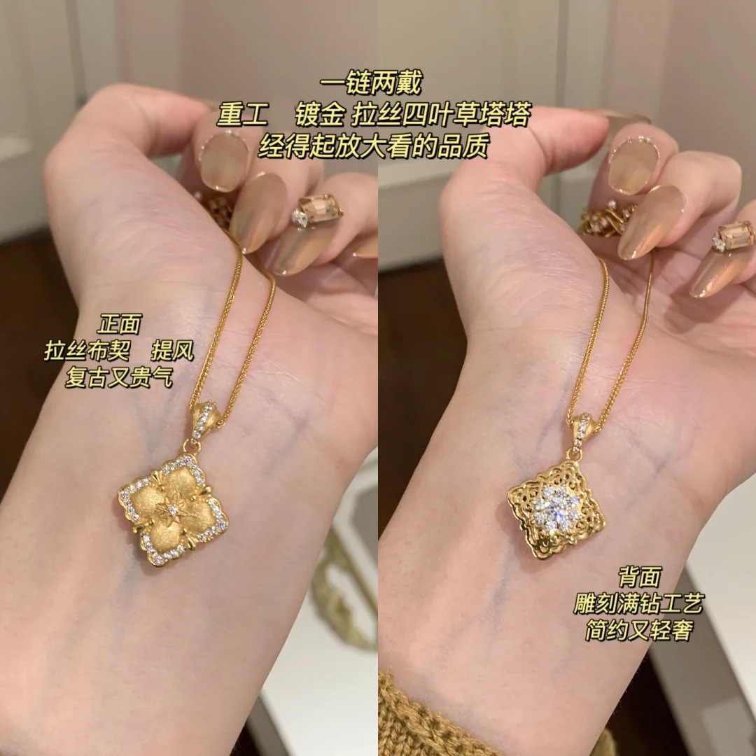 钻石之乡实验室人工培育钻意大利中古拉丝工艺布家四叶草双面戴项