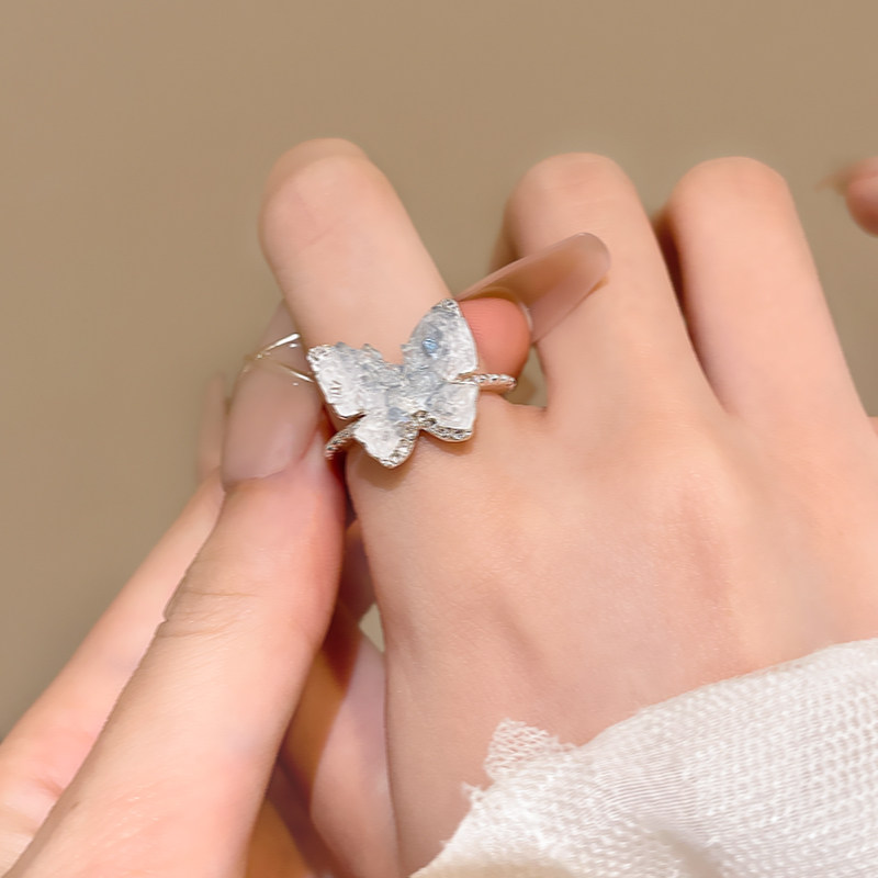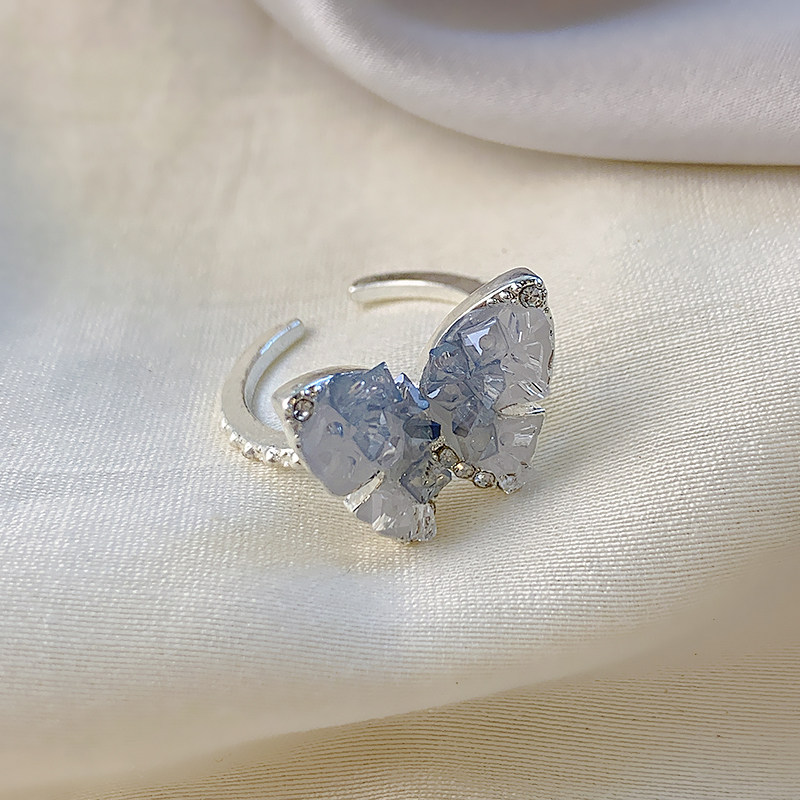 蓝色冰晶蝴蝶开口戒指女潮2024新款爆款轻奢高级感食指戒小众指环
