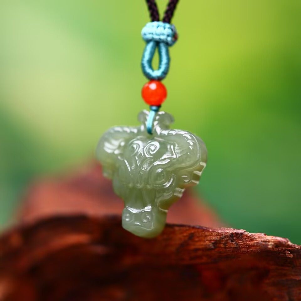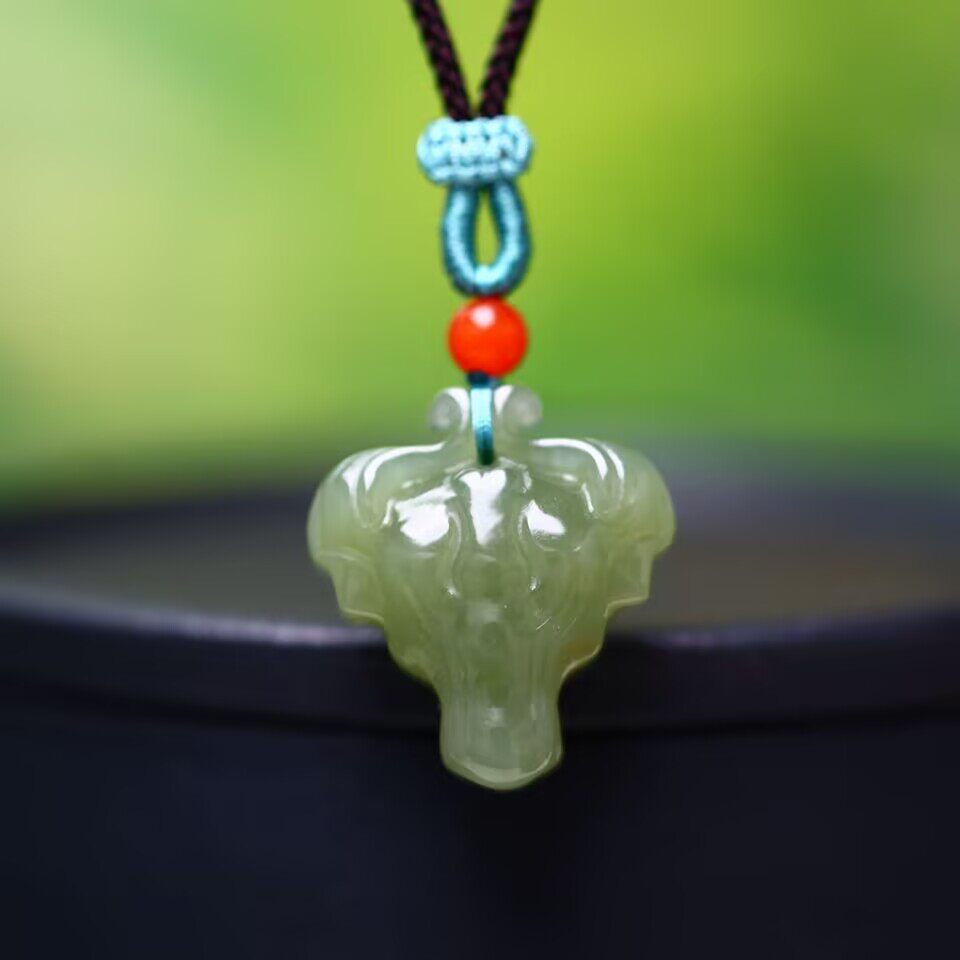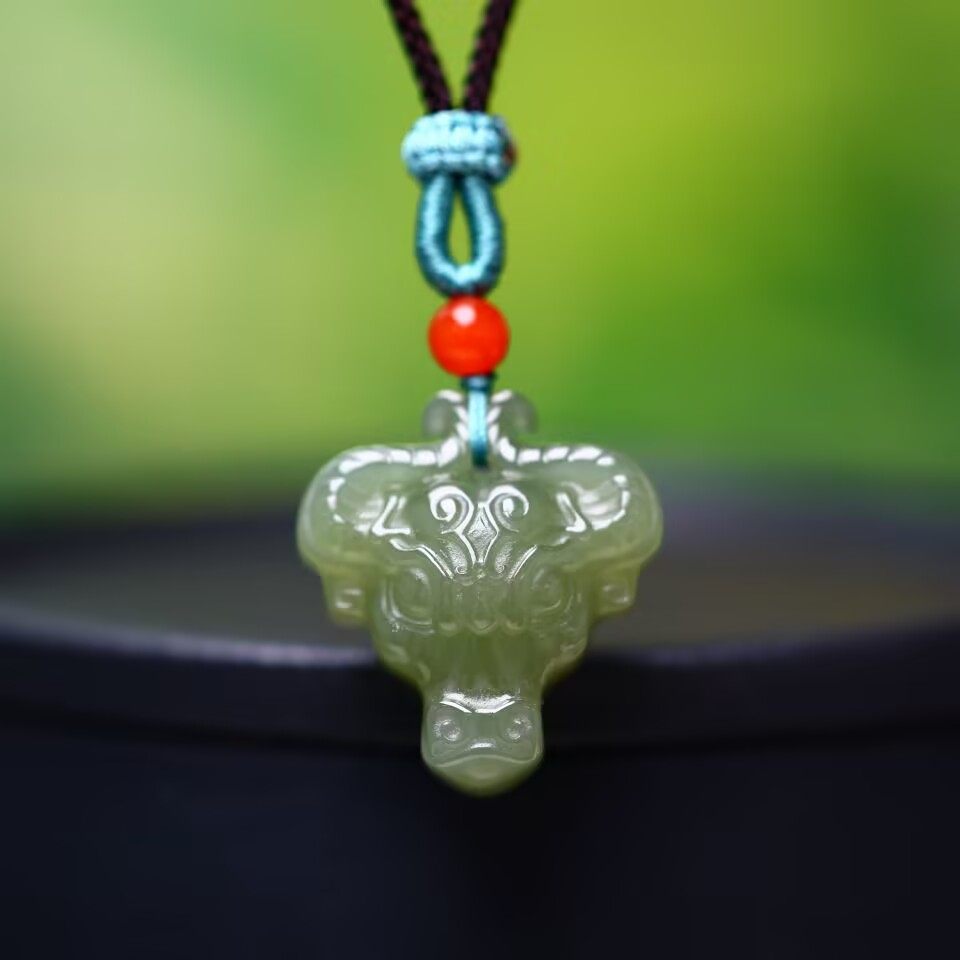 精致和田玉青海料牛头吊坠编织绳古风项坠男女款小众玉石挂件饰品