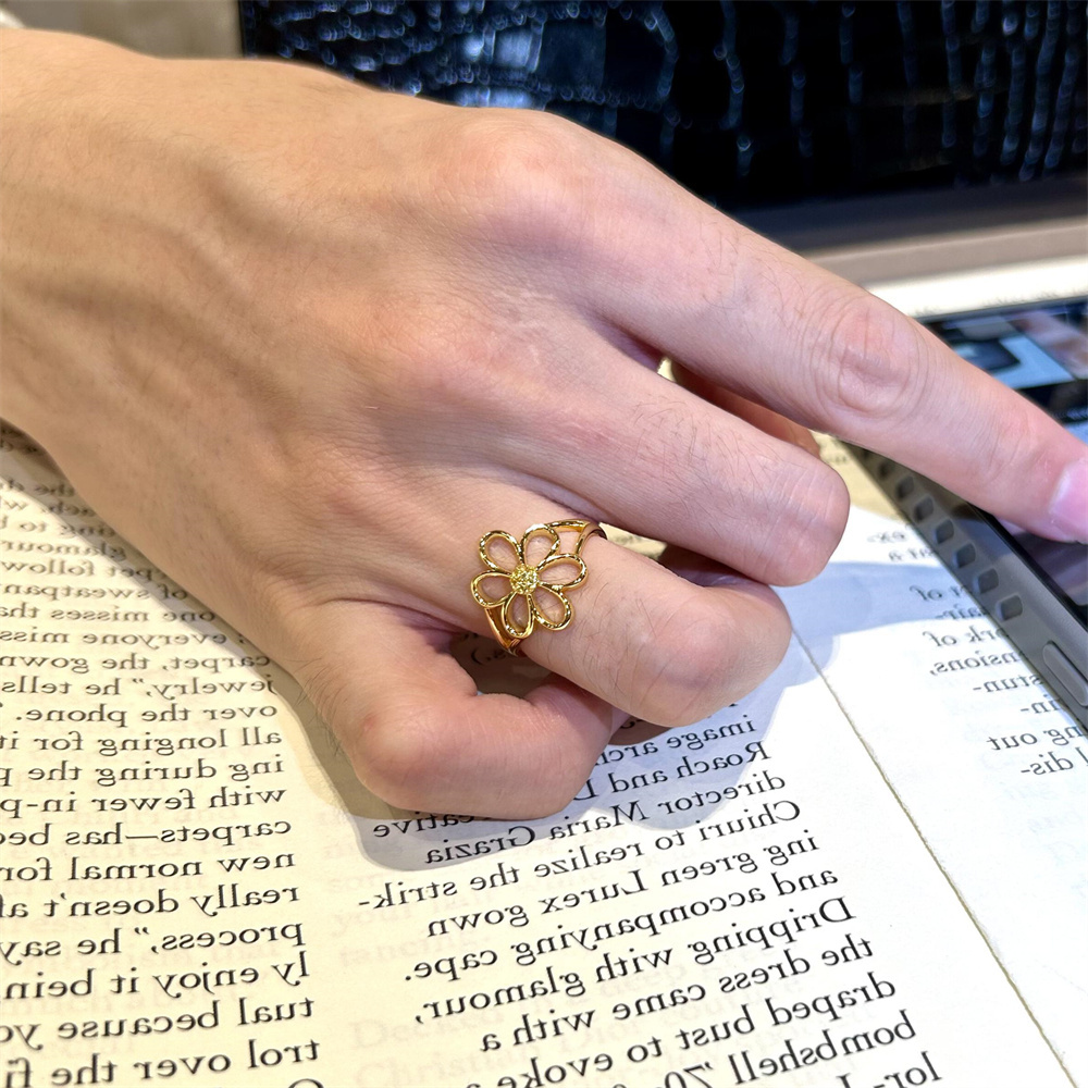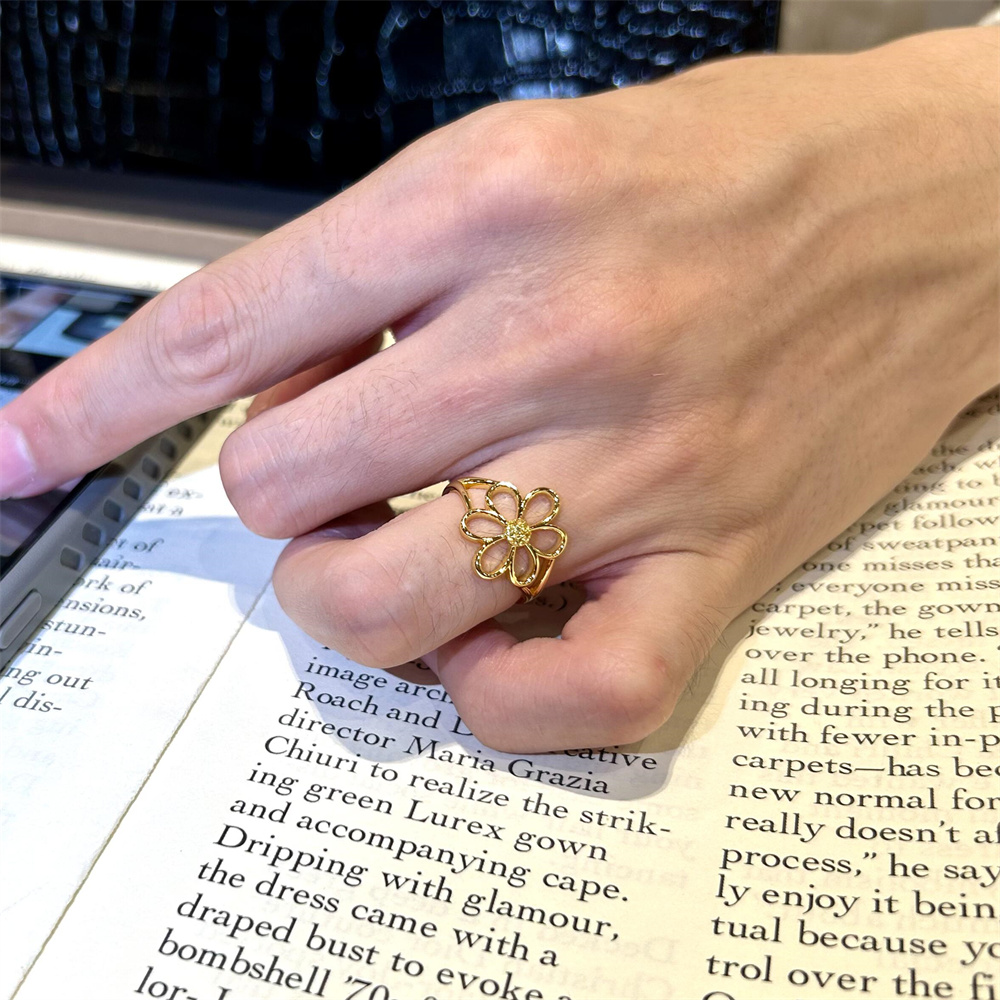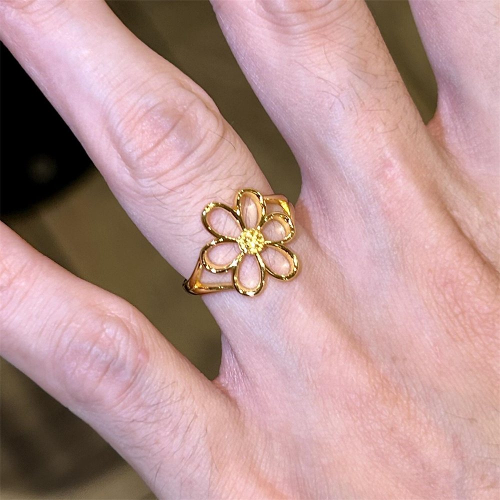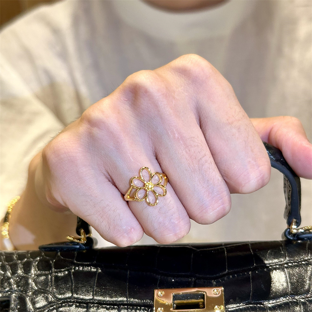 钛钢不掉色!独特镂空花朵金戒指女高级感小众开口食指戒指环新款