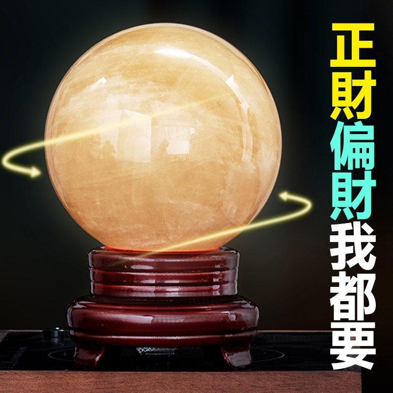 天然黄水晶球办公室装饰摆件招财旺财运黄色原石真纯玄关聚财家里