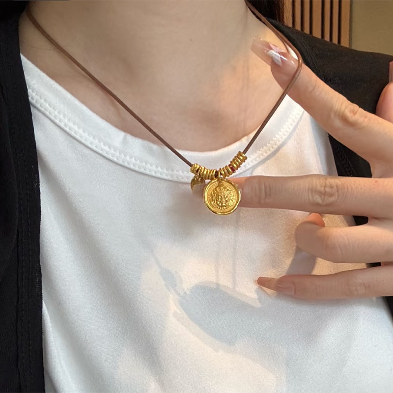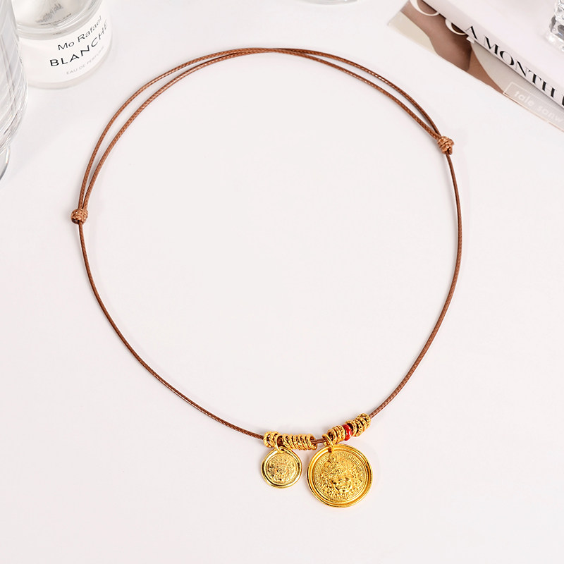 铜合金项链 新中式盘缠项链女可调节长短挂链手工编织绳配饰轻奢