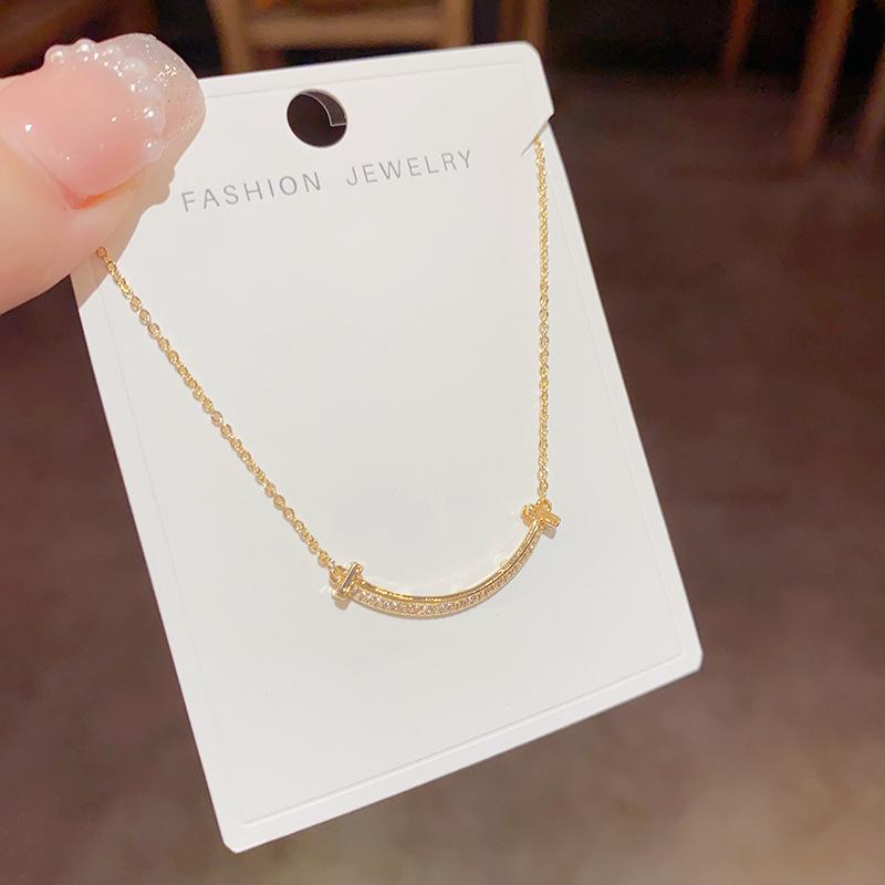 韩式个性简约一字笑脸项链轻奢小众设计感轻奢夏季百搭时尚锁骨链