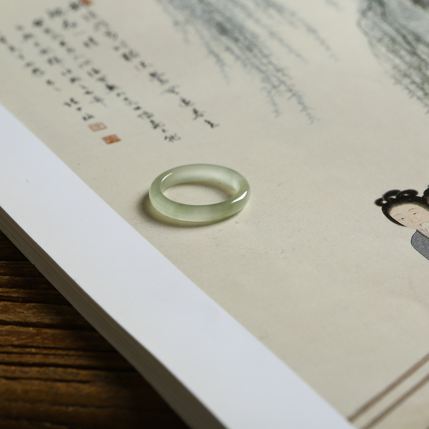 7号戒指 和田玉晴水青白小尺码细条素圈指环 尾戒 8264