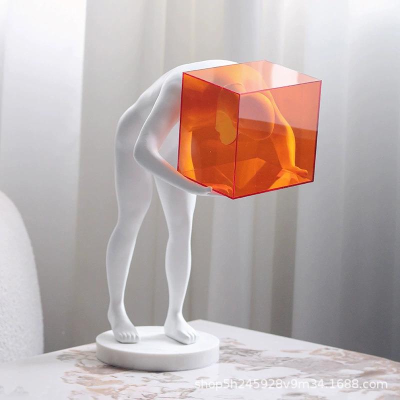 现1429代简克约亚力橙色囚笼人物脂雕塑树件客厅玄关酒店家摆居装
