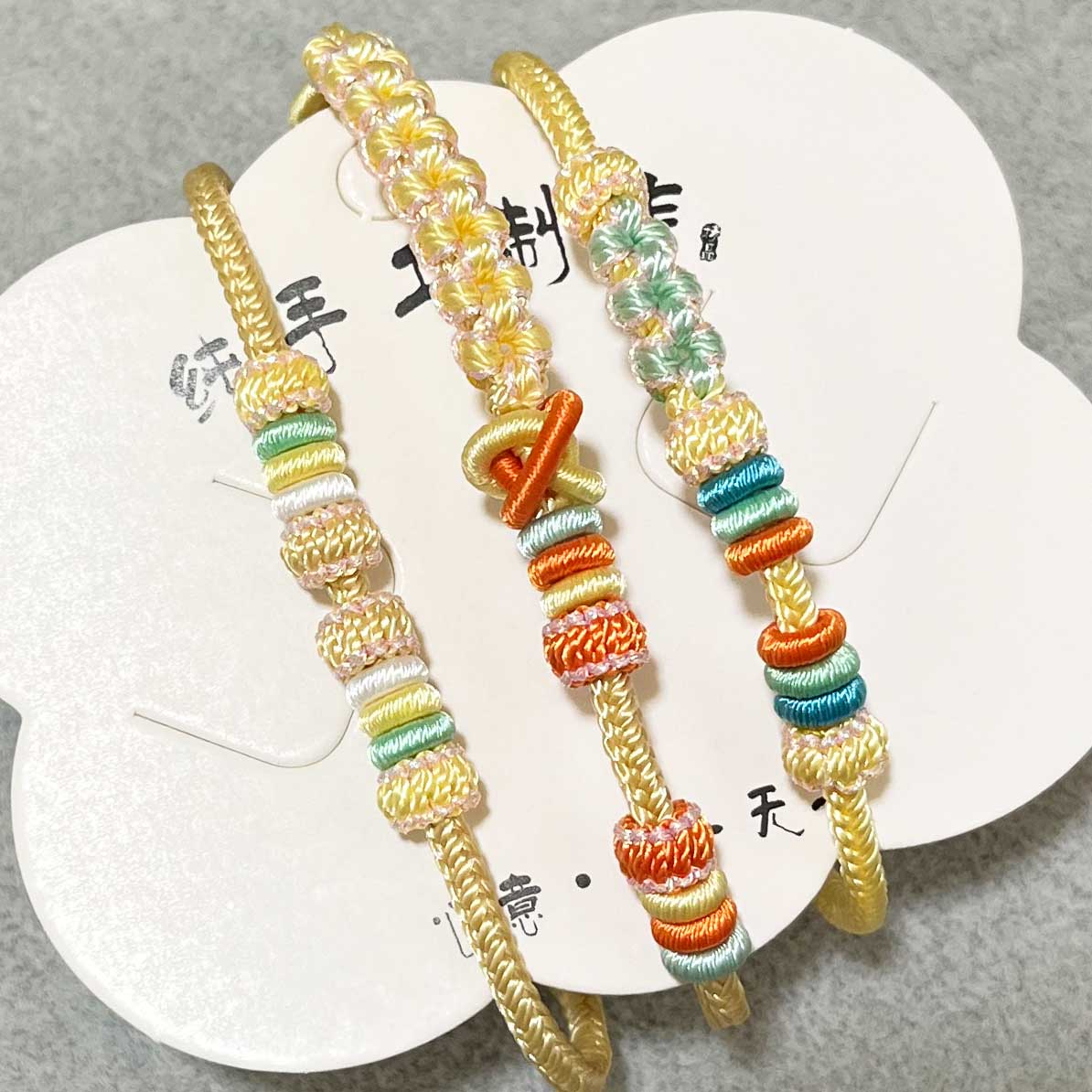 桃花结手绳双联结手绳纯手工编织黄色咖啡色手绳可穿黄金DIY手链