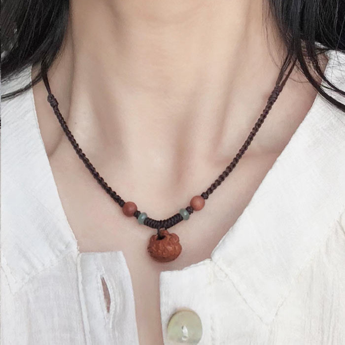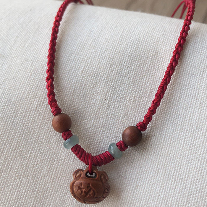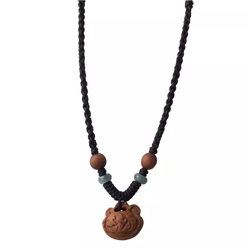 本命年红绳项链编织女士真桃木护身挂件福锁平安锁成人男宝宝儿童