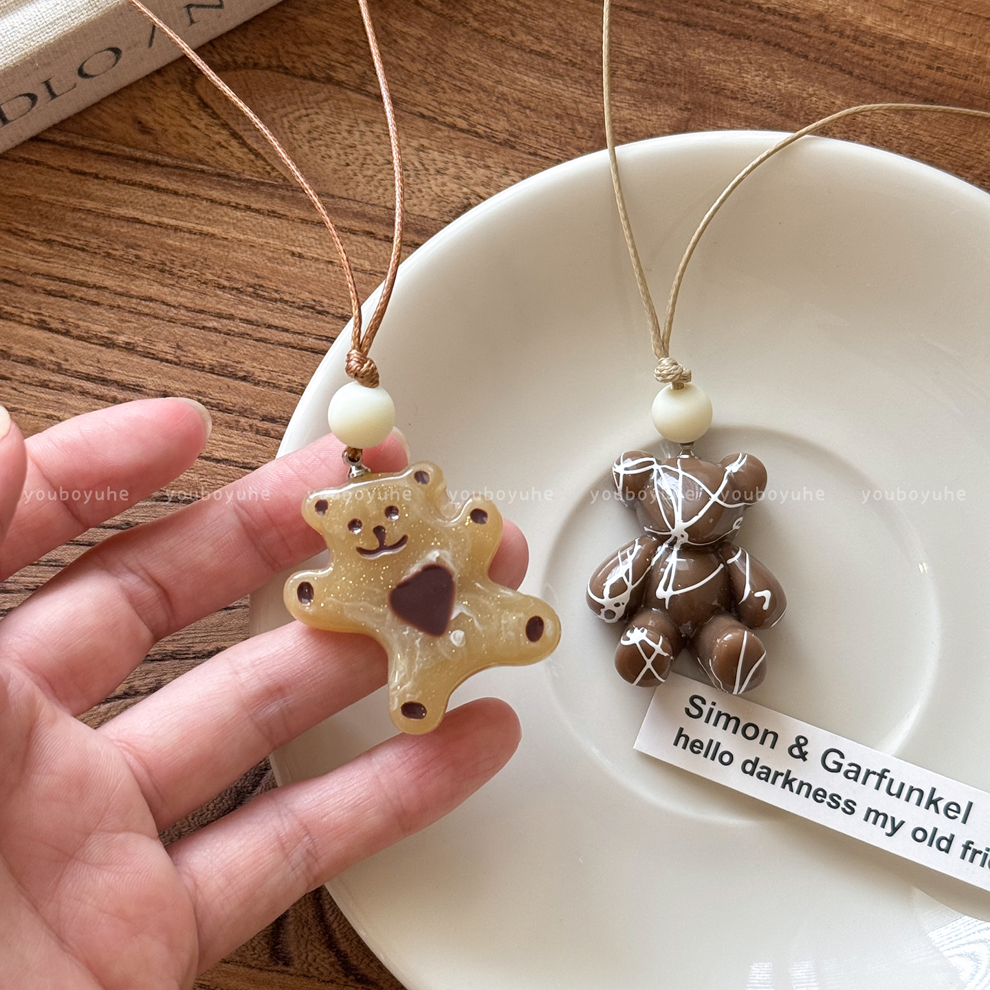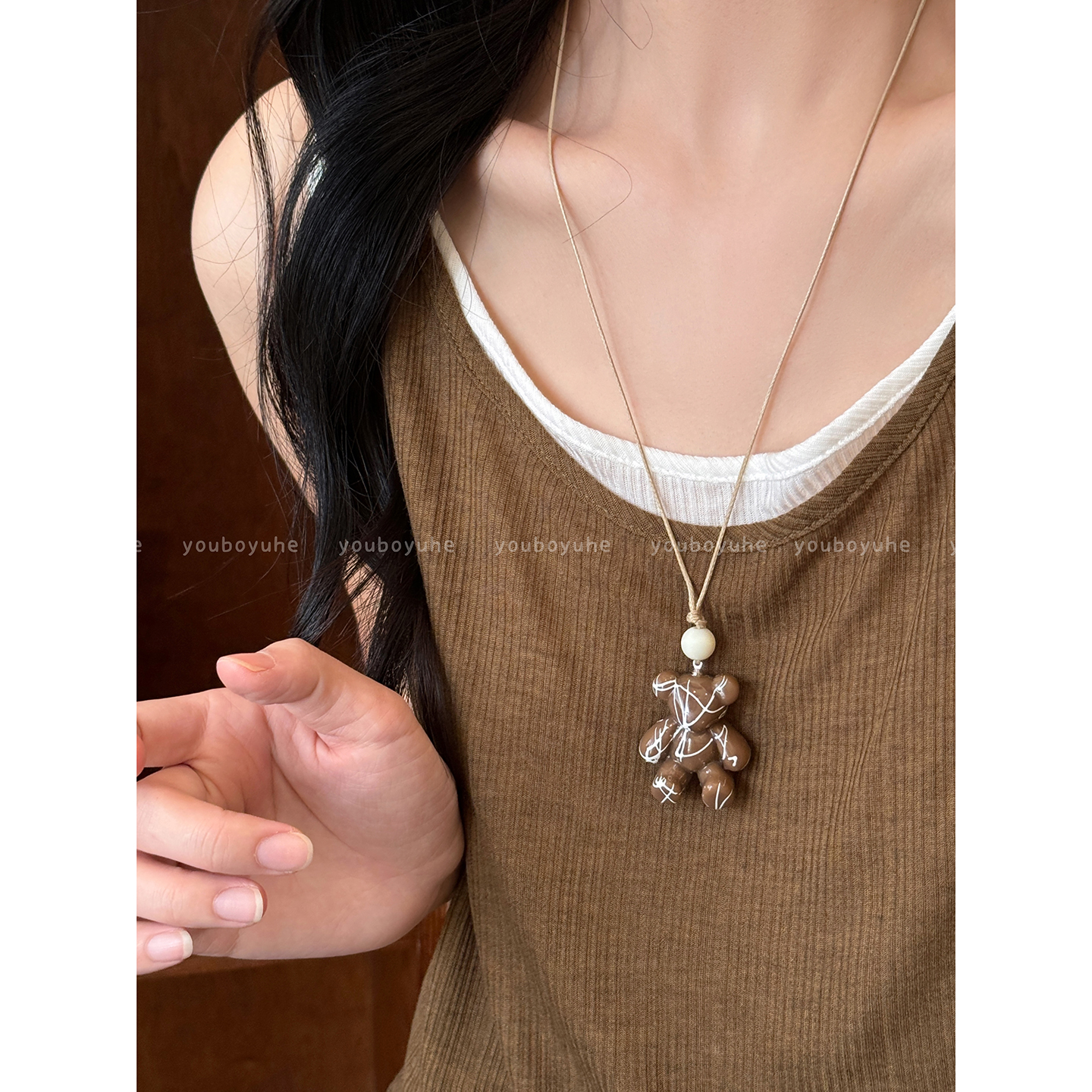 卡通果冻爱心小熊吊坠项链女2025新款挂脖毛衣链小众设计编绳配饰