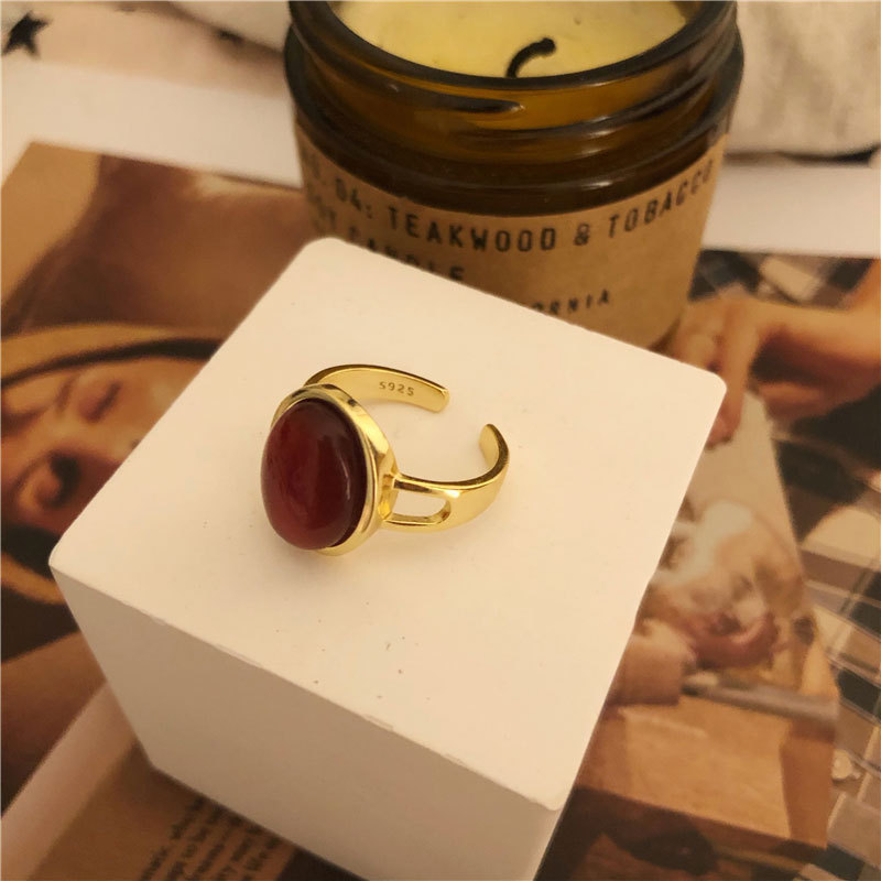 法式高级感红宝石复古戒指女925银韩版ins网红气质开口食指戒潮