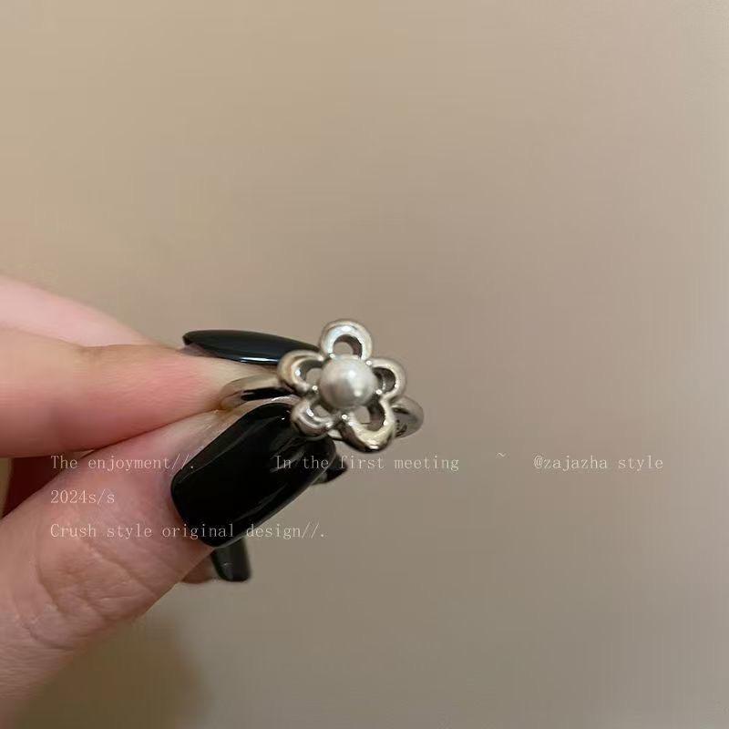 黑色滴釉小花戒指女ins高级感开口可调节甜美复古气质食指戒指环