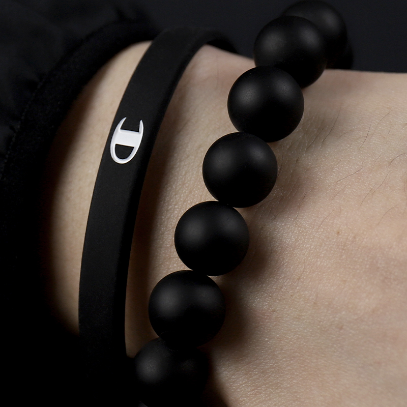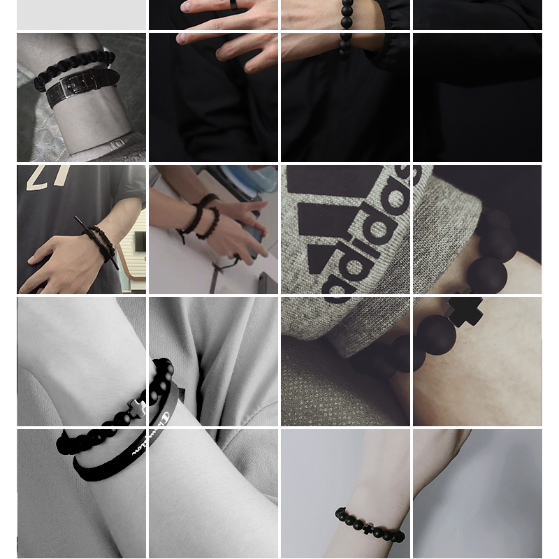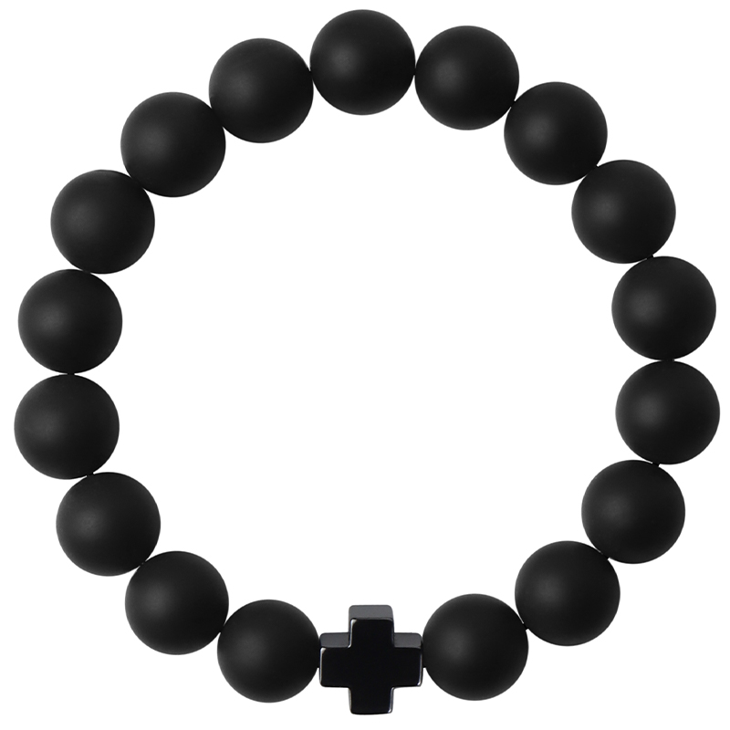 酷黑磨砂石十字黑胆石手链男女个性潮流学生情侣礼物ins小众设计