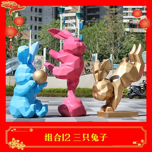 大型抽象几何快面兔子摆件块面兔雕塑户外公园林景观广场装饰