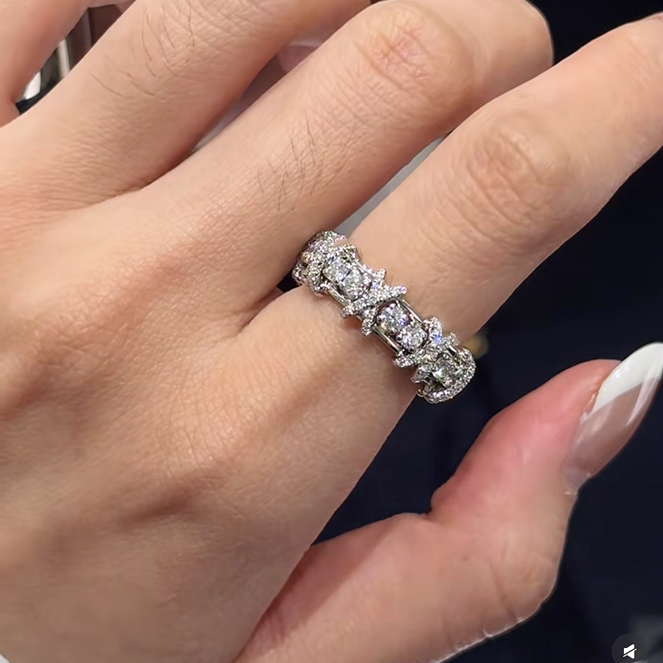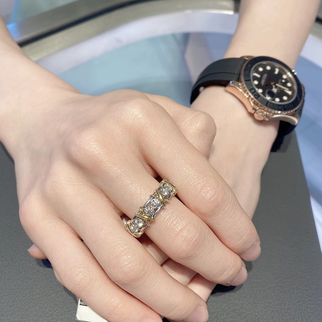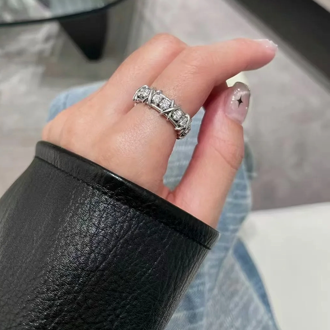 珠宝级~十六石X交叉排钻戒指纯银宽版双色轻奢高级感指环男女情侣