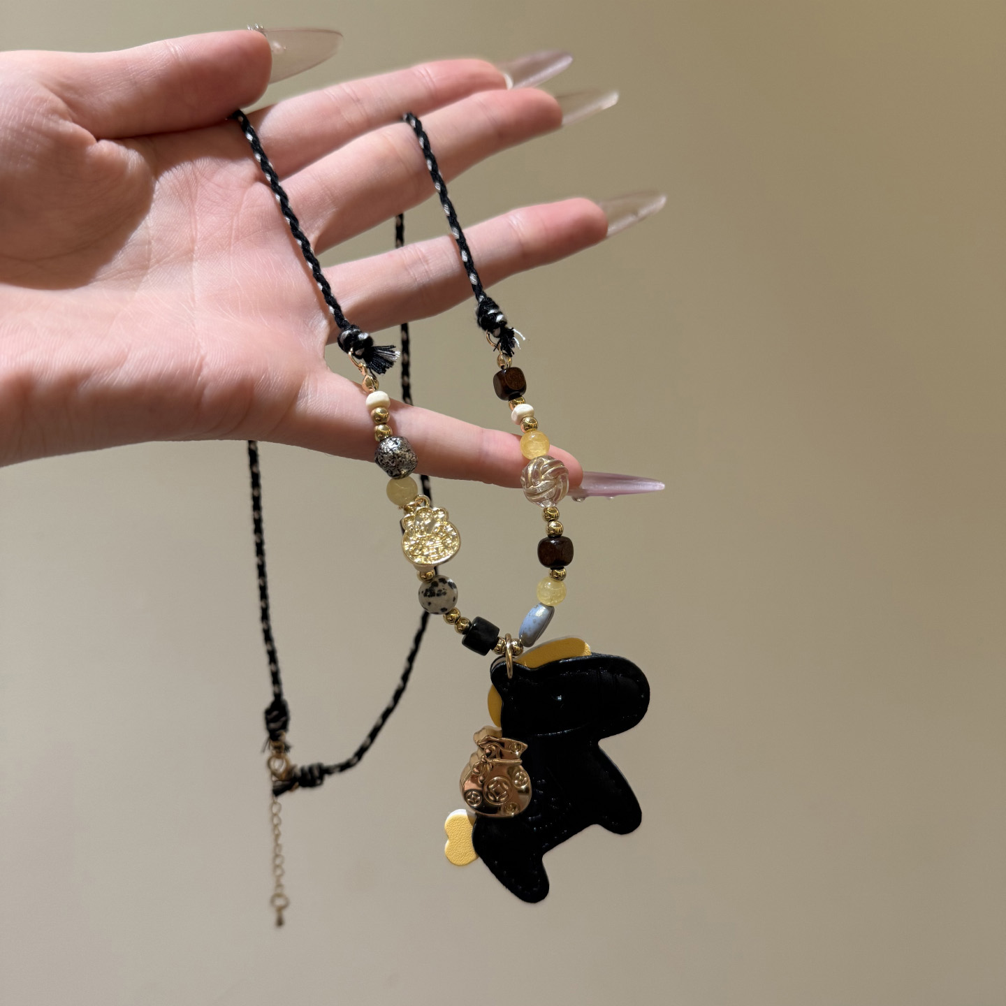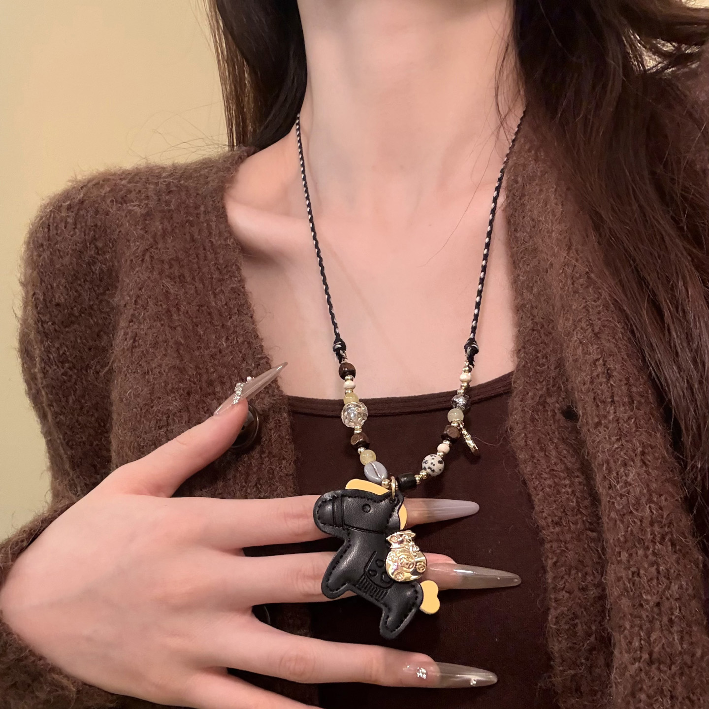 HEY TAO秋冬复古金袋小马编织绳项链女高级感长款挂脖配饰毛衣链