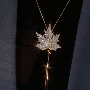 秋冬枫叶毛衣链女长款时尚日常百搭项链配饰个性衣服挂饰卫衣链女