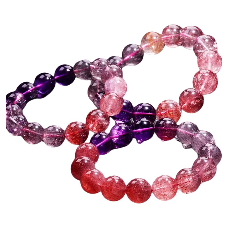 再次,对于缀穿水晶制品(如项链、手链、佛珠),要看孔眼是否平直,孔的粗细是否匀称,有无细小裂纹。孔壁必须清澈透明,无“白痕”。